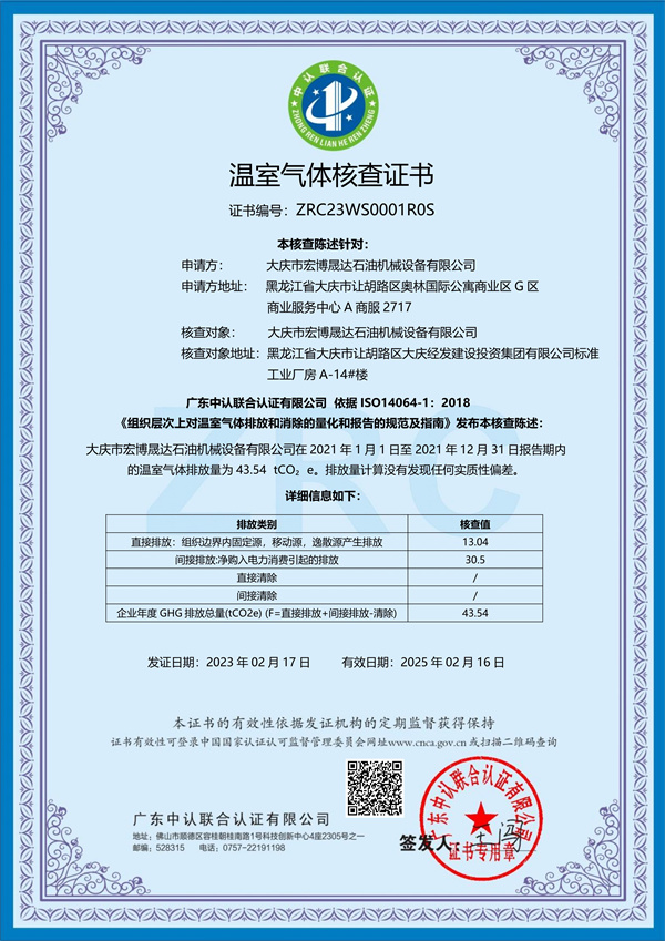 溫室氣體核查證書